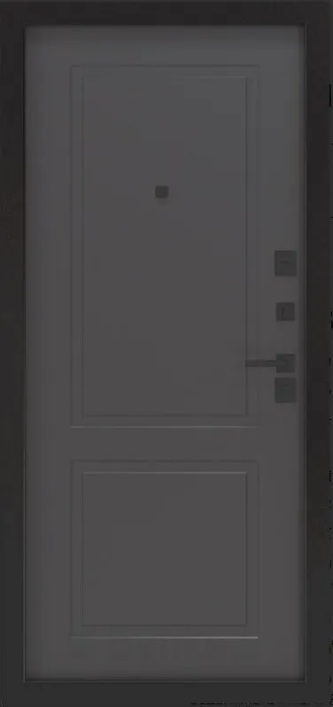 Черная матовая: Броненакладкая, сувальдные накладки со шторкой, ручка, ночник, цилиндр ключ-вертушка, глазок по центру или сбоку